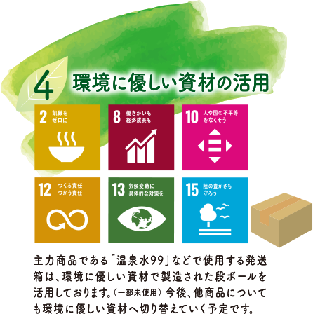 国連が提唱する「持続可能な開発⽬標(SDGs)に賛同し、その達成に向けて下記の取り組みを実施しています。