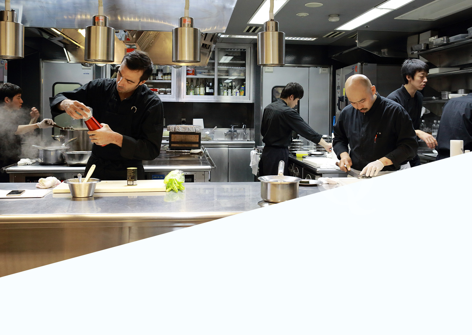 東京・銀座にある高級レストラン「ESqUISSE(エスキス)」は2012年のオープン以来、ミシュランガイドで2つ星を獲得し続けているフレンチの名店です。店名の「エスキス」は美術用語でいう素描の意味。つまりデッサンです。真っ白なキャンバスに、フランス人と日本人のシェフが、フレンチの伝統を尊重しつつも、国境や食材にとらわれない美しい料理のアートを描いていきます。