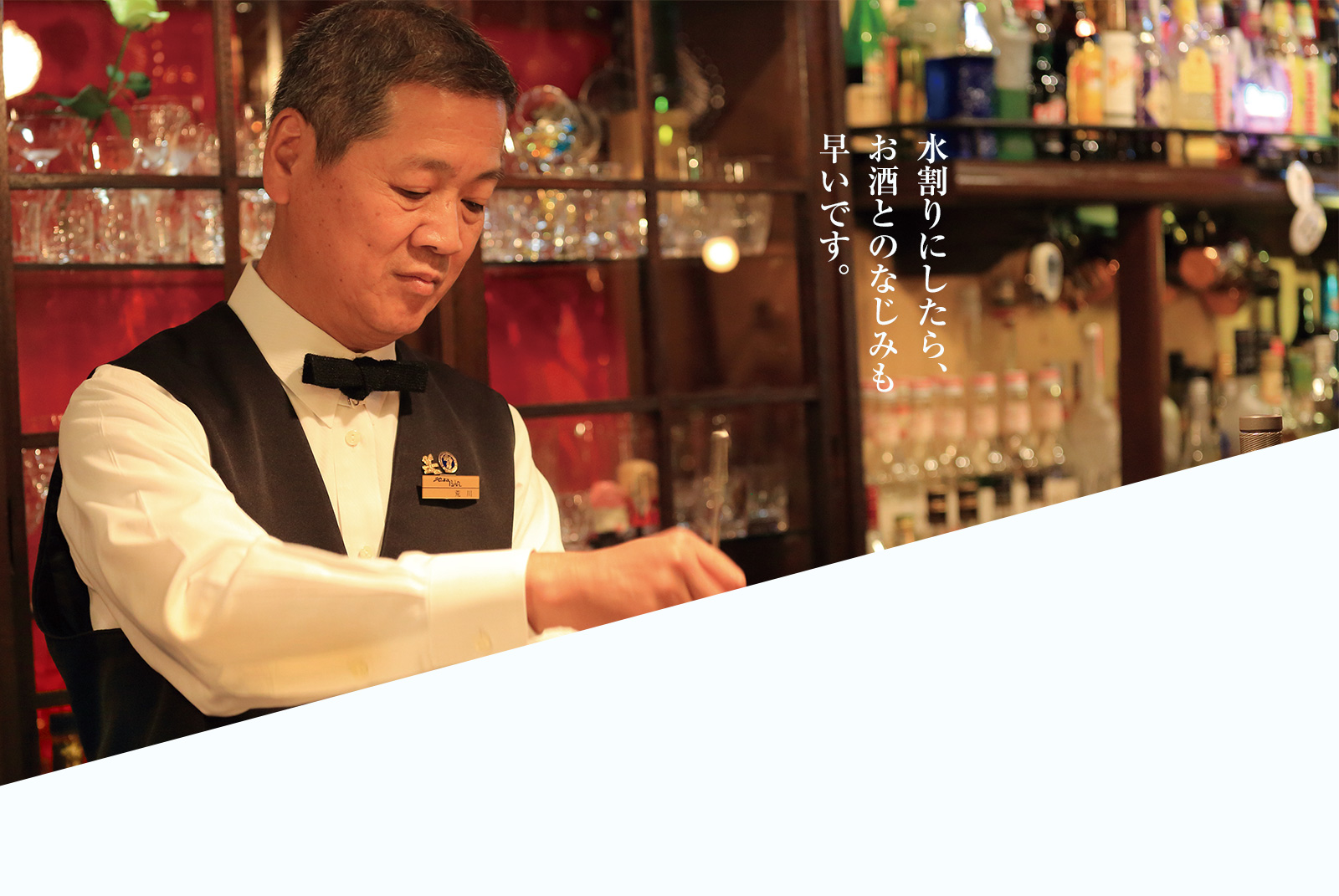 池田BARは荒川さんが、創業者である先代の意志を引き継ぎながら、バーとしての品格を守っています。とは言え、決して敷居が高いわけではなく、一見の観光客でも気軽に入れ、荒川さんが優しい口調で語りかけてくれます。創業時からの50年来の常連客がいまだに訪れるのも納得です。そんな鹿児島で愛されてきたバーで、温泉水99を認めていただいていることに、誇りを感じます。